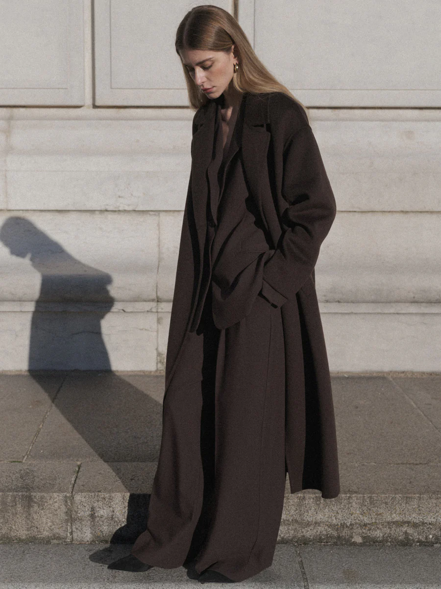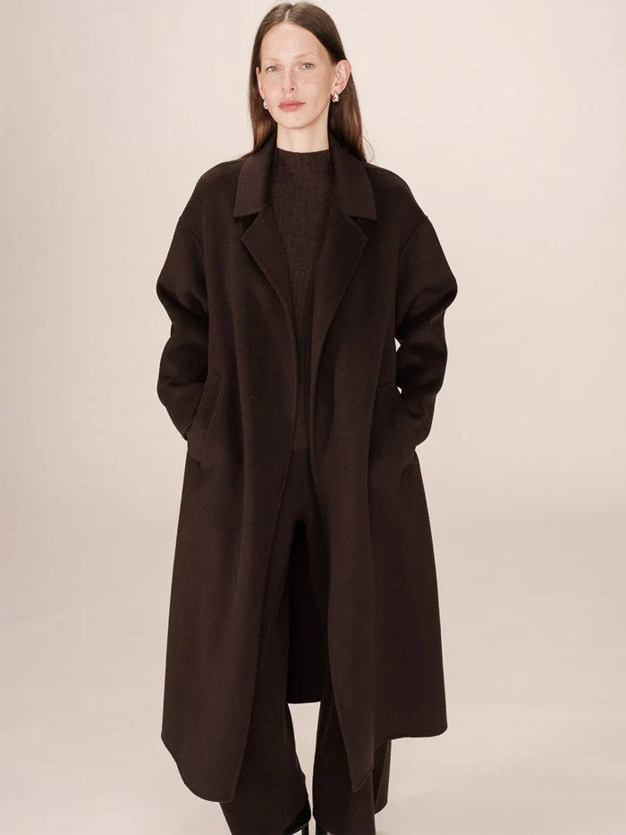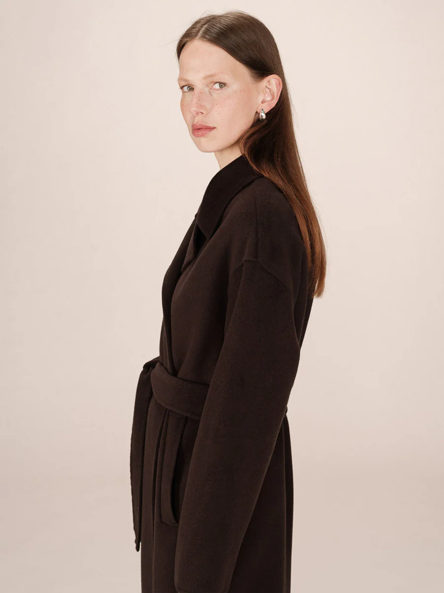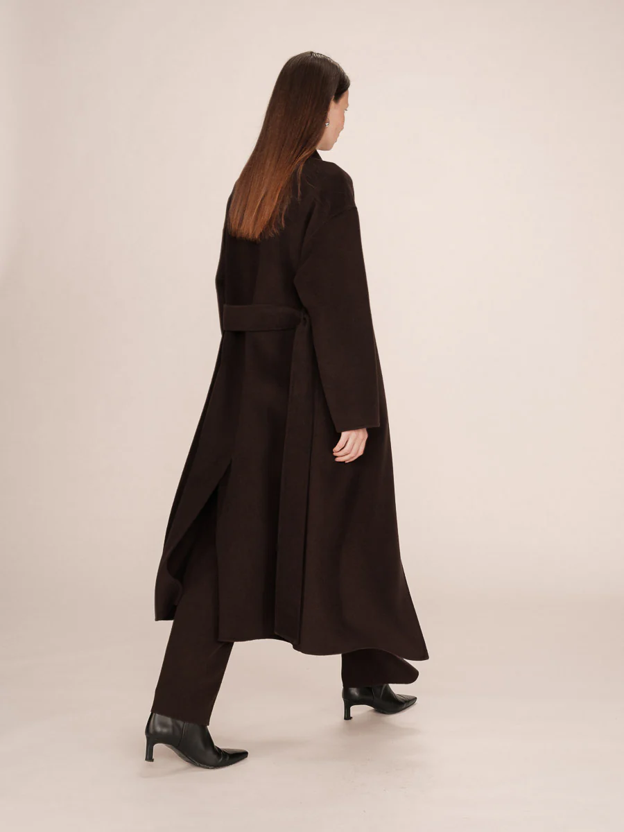 Grace&Milan upea villakangastakki. Pitkä malli jossa on vyö. Materiaali on 70% villaa ja 30% polyesteriä.Koko on normaalia/vähän reilua.Väri suklaanruskea.
