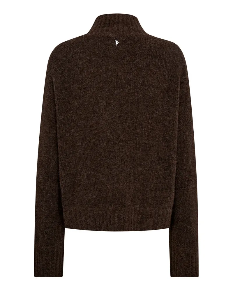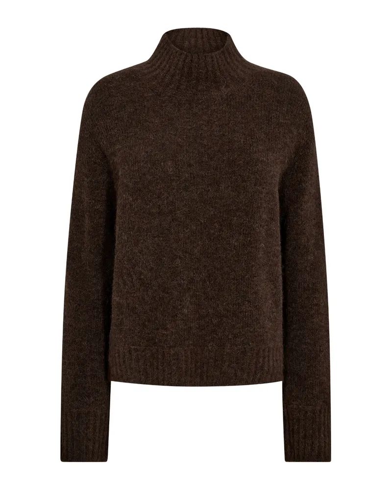 Upa Mosmoshin pooloneule ruskeana. Materiaali on pehmeää ja notkeaa mohairia 33%, villaa 32%, polyamidia 29% ja elastaania 5%.Koko on aika reilua.
