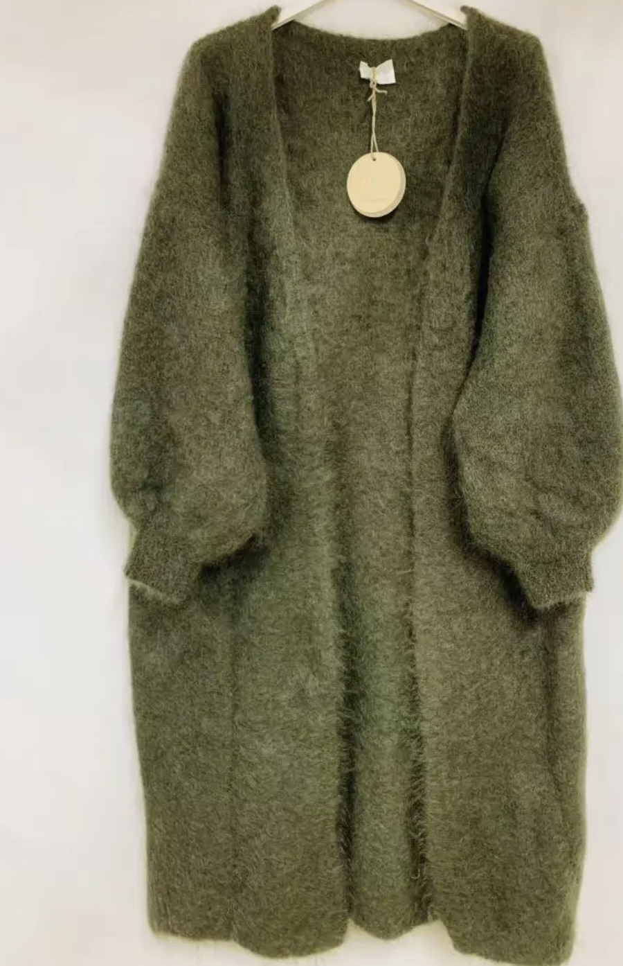 Upea pitkä neuletakki!Materiaali on 70% mohairia, 28% polyamidia ja 2 % elastaania.Ladukas. Koko on one size(XS-xl)